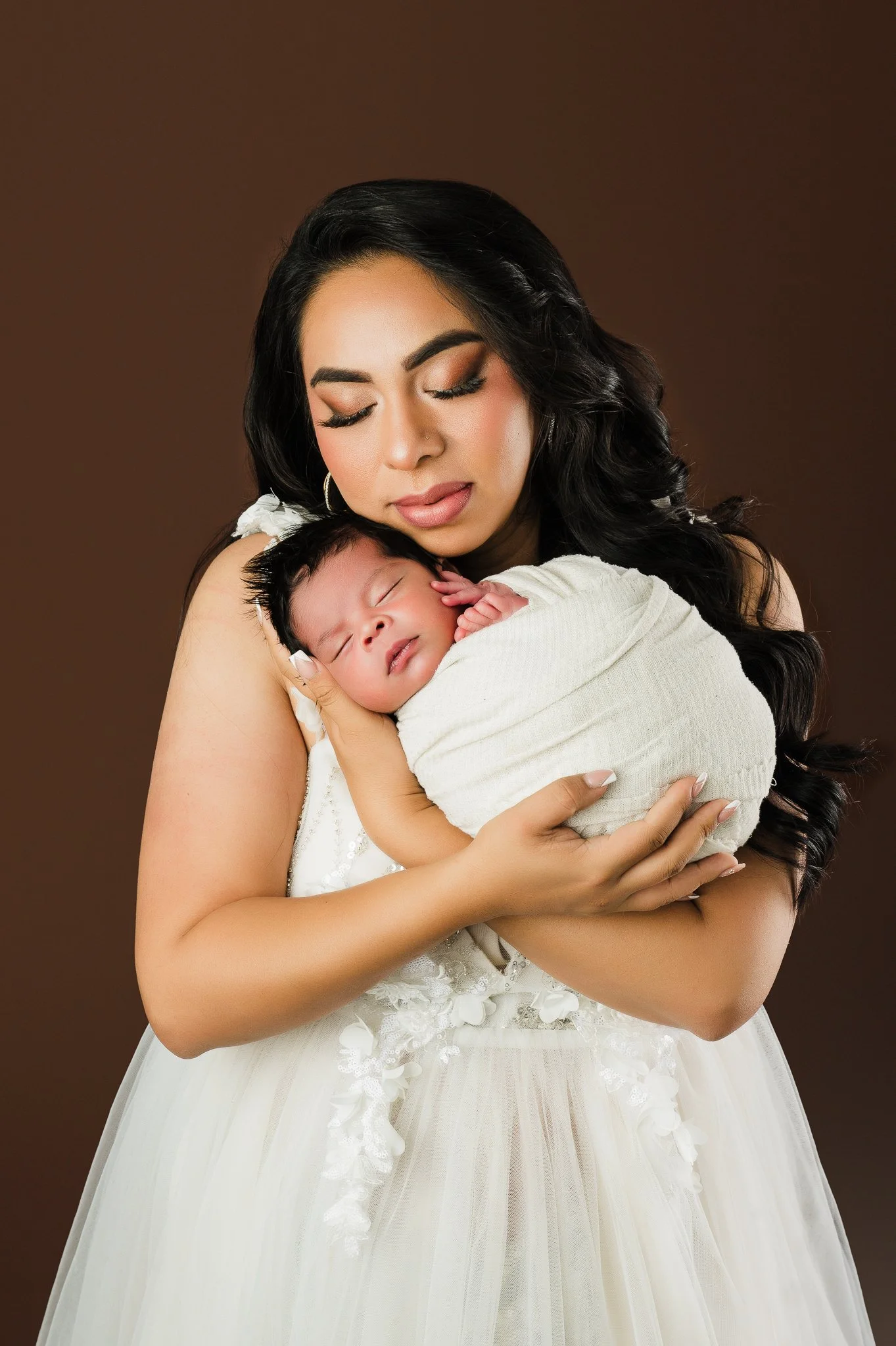 For this session, we focused on soft, timeless setups that highlighted his tiny features and peaceful expressions. Every outfit, wrap, and prop used during the session was carefully selected from my studio collection. Mom and big sister also wore dresses from my curated client closet, making the experience completely stress-free and beautifully coordinated.